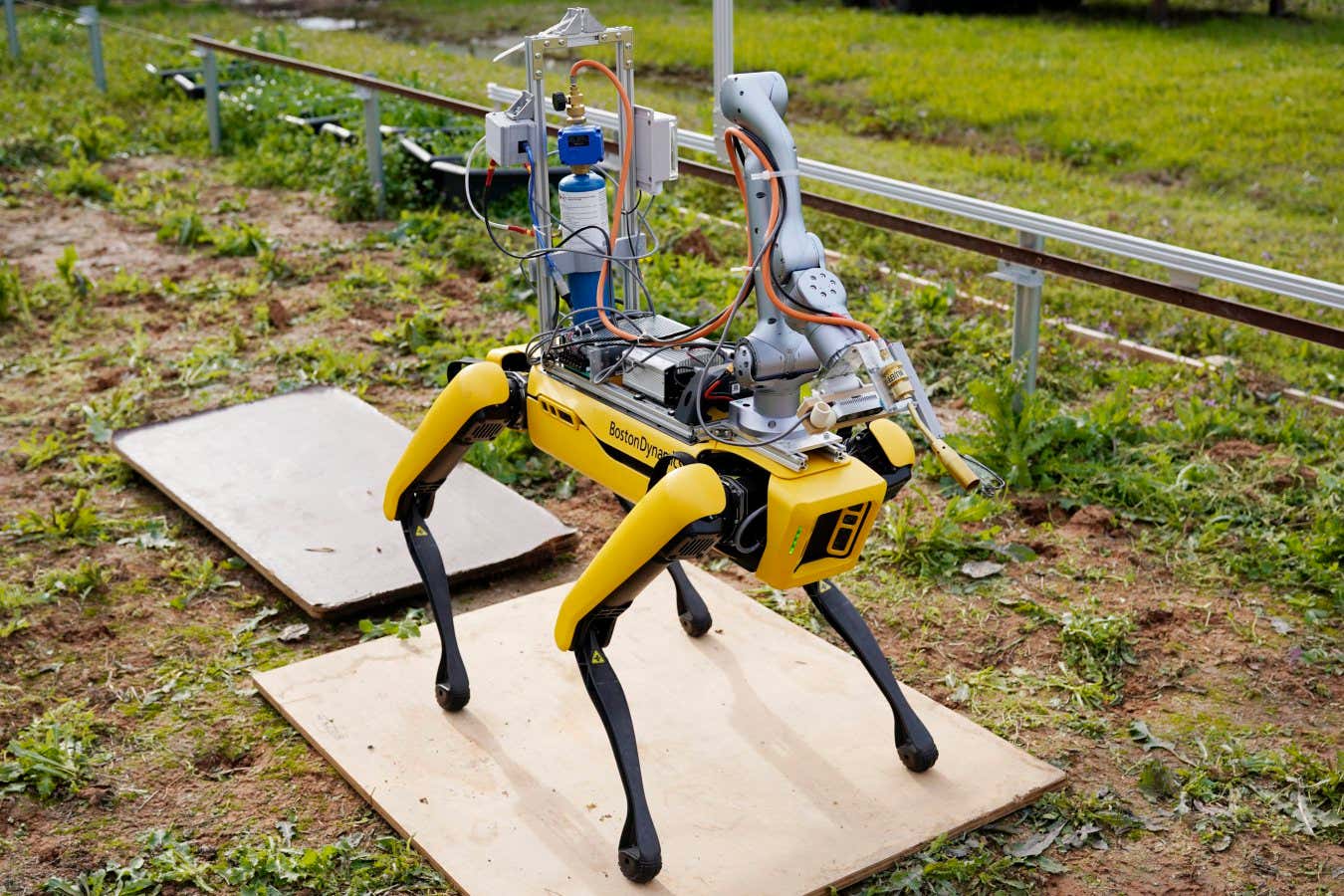In search of an alternative solution, Dezhen Song at Texas A&M University and his colleagues have developed a weed control system that uses a brief burst of heat from a propane-powered torch controlled by a robotic arm, attached to a Spot robot manufactured by Boston Dynamics.